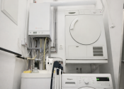 Technické vybavenie bytu spĺňa požiadavky moderného bývania. Vykurovanie je zabezpečené plynovým kotlom a ohrev vody elektrickým bojlerom. Byt je vybavený bezpečnostným systémom s alarmom, čo zvyšuje komfort a bezpečnosť bývania. Podlahy v obytných miestnostiach tvoria drevené parkety, zatiaľ čo v kuchyni, kúpeľni a toalete je praktická dlažba. Nehnuteľnosť sa predáva kompletne zariadená, čo umožňuje okamžité nasťahovanie bez potreby ďalších investícií.