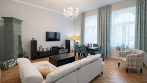 Byt s veľkorysou výmerou 114 m² prešiel kompletnou rekonštrukciou, pričom bol zachovaný jeho pôvodný charakter. Vysoké stropy, kvalitné drevené parkety a priestranné miestnosti vytvárajú neopakovateľnú atmosféru, ktorú ocenia najmä milovníci štýlového mestského bývania. Interiér pôsobí veľmi elegantne, vzdušne a zároveň poskytuje maximálny komfort pre každodenný život.