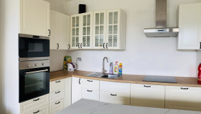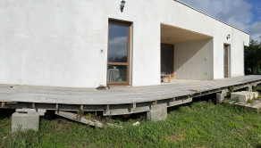 Dom s s minimalistický dizajnom sa nachádza na sútoku Váhu a Malého Dunaja v lone prekrásnej prírody. Drevodom s úžitkovou plochou 125 m2 má vynikajúce dispozičné riešenie. Zo vstupnej chodby sa dostanete do kuchyne, ktorá je spojená s jedálňou a obývačkou, ku ktorej patrí aj zastrešená terasa. Ďalšie štyri izby poskytnú dôležité súkromie pre každého člena rodiny. Dve kúpeľne a technická miestnosť dodajú domu ďalšie pozitíva. Okná a dvere sú drevené, vyhotovené s trojsklom. Kúrenie je pripravené na tepelné čerpadlo resp.kachľami na tuhé palivo.