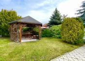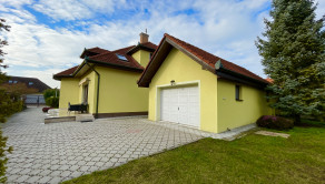 Tehlový rodinný dom je postavený na pozemku 618m2 s garážou 15m2 s letnou kuchyňou, altánkom a vlastnou studňou, s terasou 21,25m2 a s povalou.