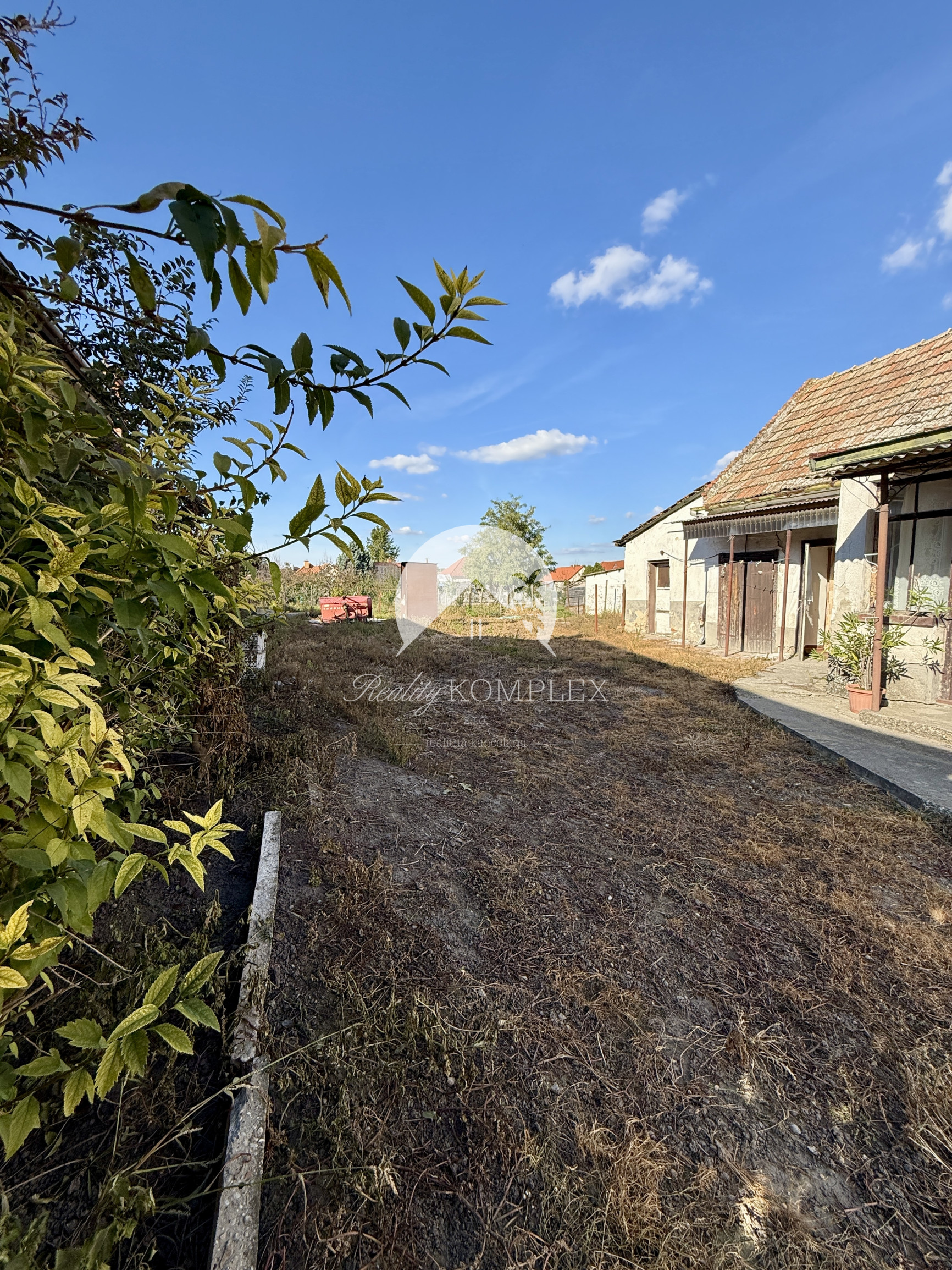 Na pozemku sa nachádza starší rodinný dom s úžitkovou plochou približne 100 m², vhodný skôr na rekonštrukciu alebo zbúranie podľa predstáv nového majiteľa.