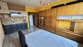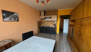 Dispozičné riešenie bytu: predsieň, kúpeľňa, kuchyňa s obývačkou. V kuchyňskej časti je umiestnená kuchynská linka, chladnička s mrazničkou. V obývacej časti je umiestnená praktická rozkladacia sedacia súprava. Okná plastové s vonkajšími žalúziami, podlaha laminátová. Schodištie čisté, susedia ústretoví a milí.