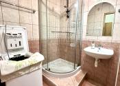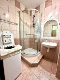•kúpeľňa so sprchovým kútom a toaletou