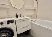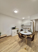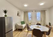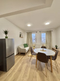 Byt je moderný, svetlý a prakticky riešený.Kuchyňa je plne vybavená spotrebičmi a v jej časti je vytvorený príjemný obývací kút.