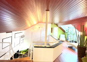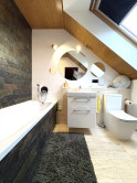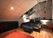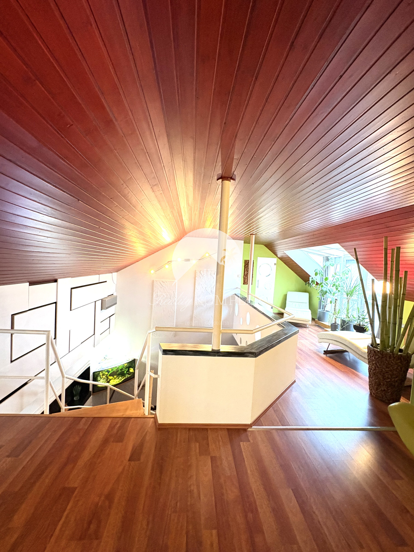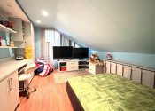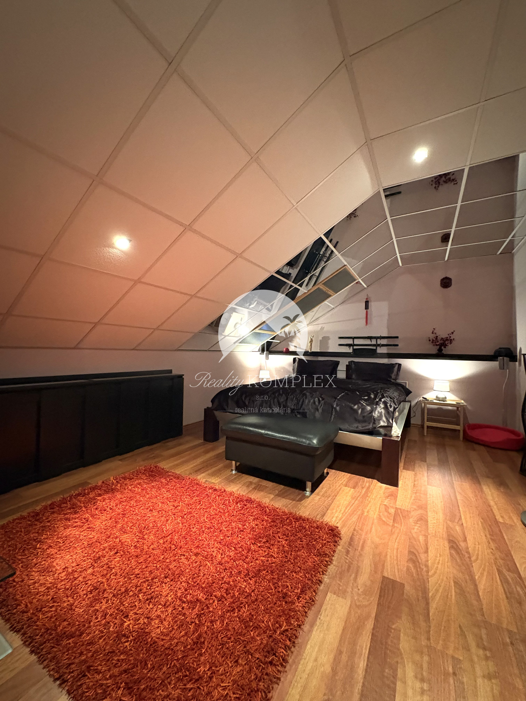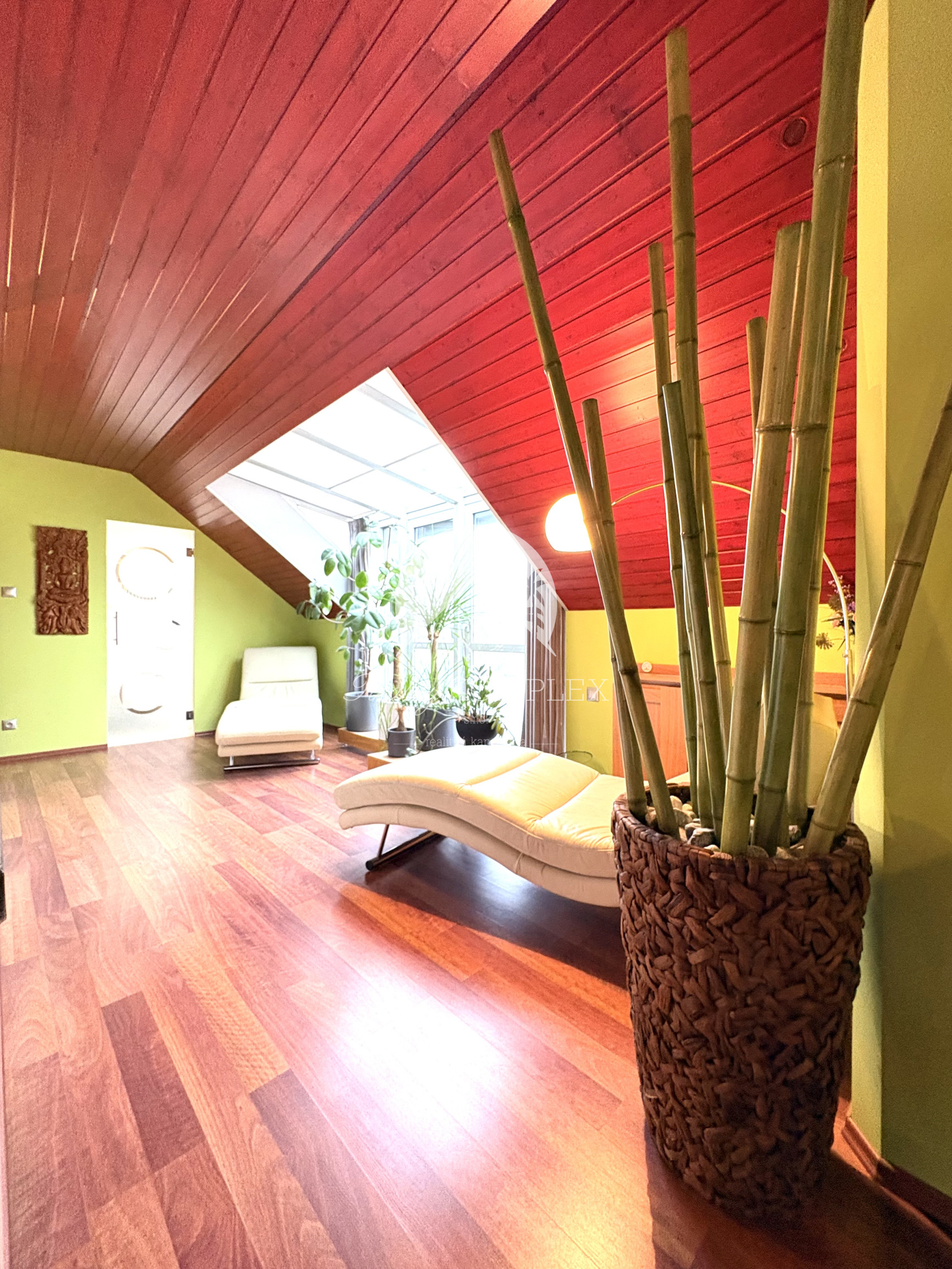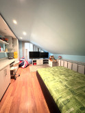 Podkrovie je riešené ako pokojná nočná časť: • galéria • veľká terasa • spálňa • pracovňa • šatník • kúpeľňa • dve samostatné izby