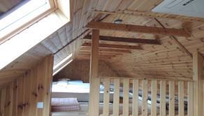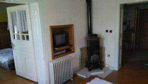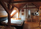 V prístavbe je spoločenská miestnosť, ktorú zútulňuje krb. Kuchyňa a kúpeľňa je aj v tejto časti domu. Podkrovie je zabudované. Veľká terasa, altánok a záhrada zabezpečujú úžasnú atmosféru pre príjemné posedenie s priateľmi alebo s rodinou pri táboráku.
