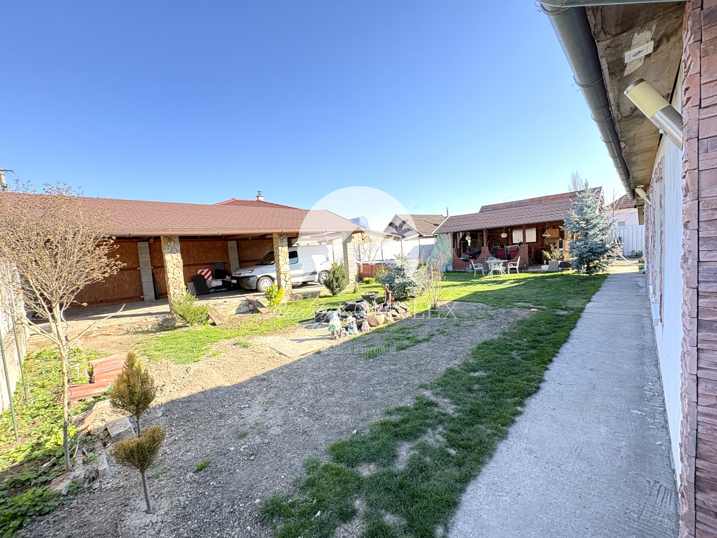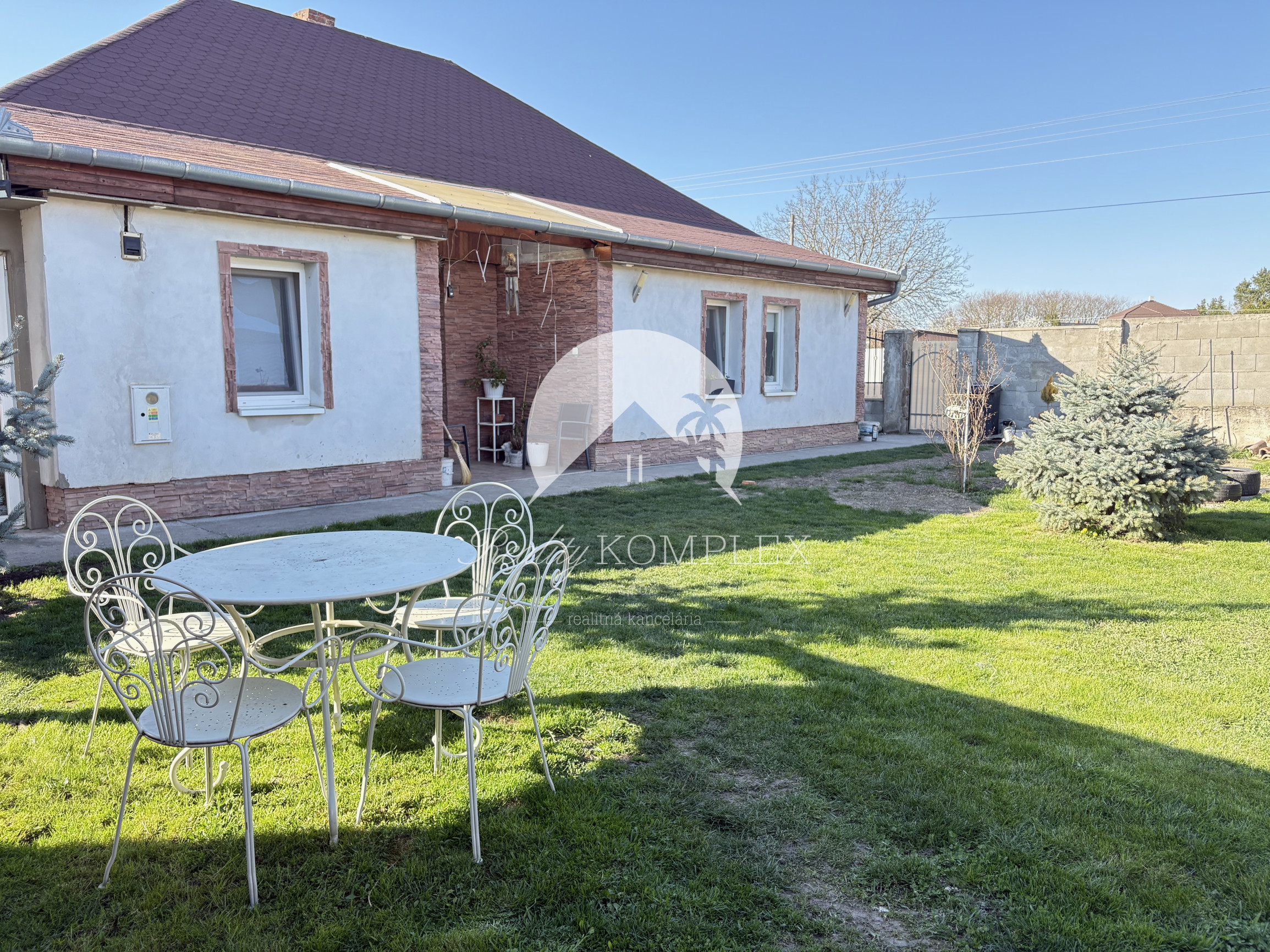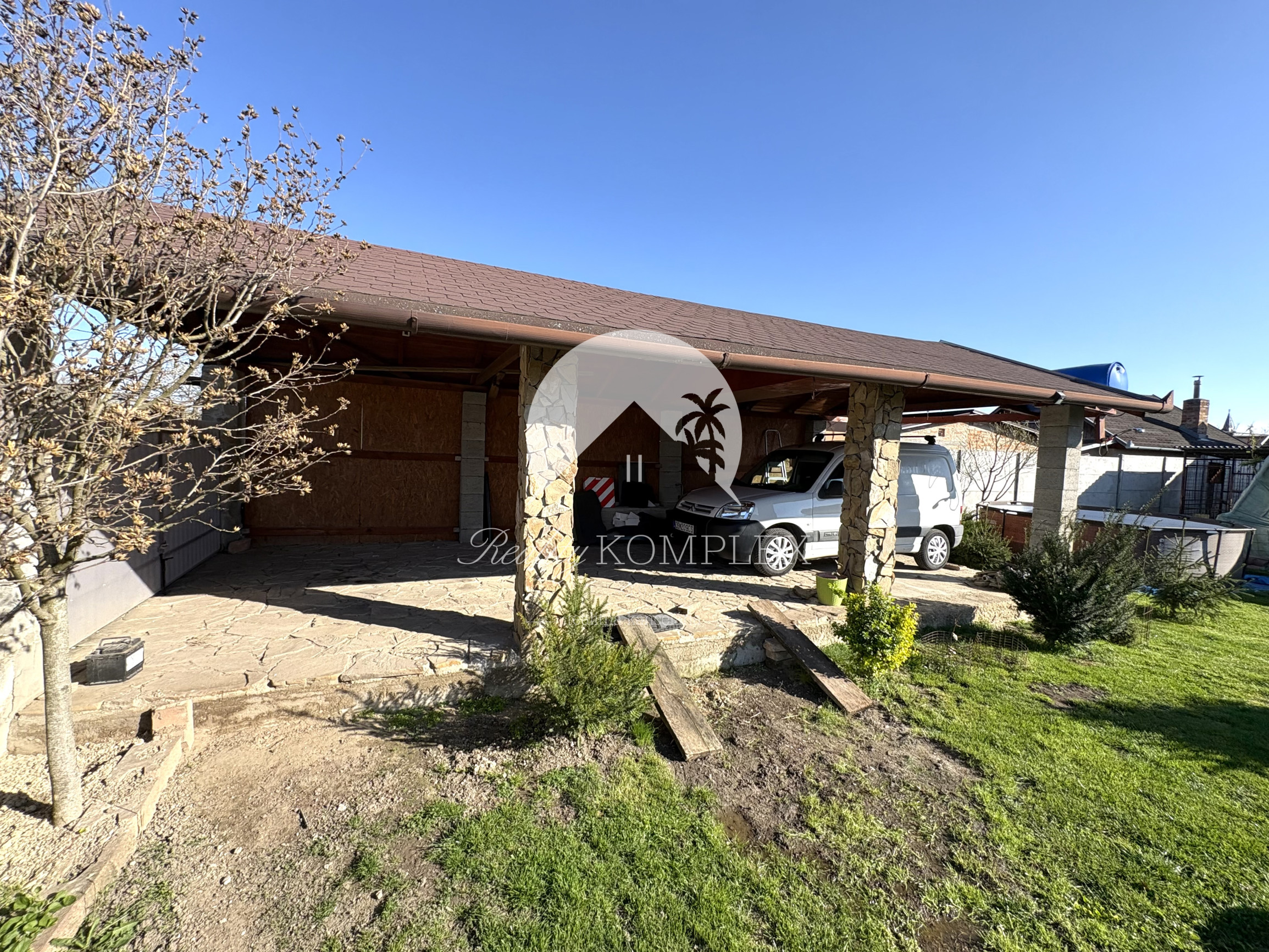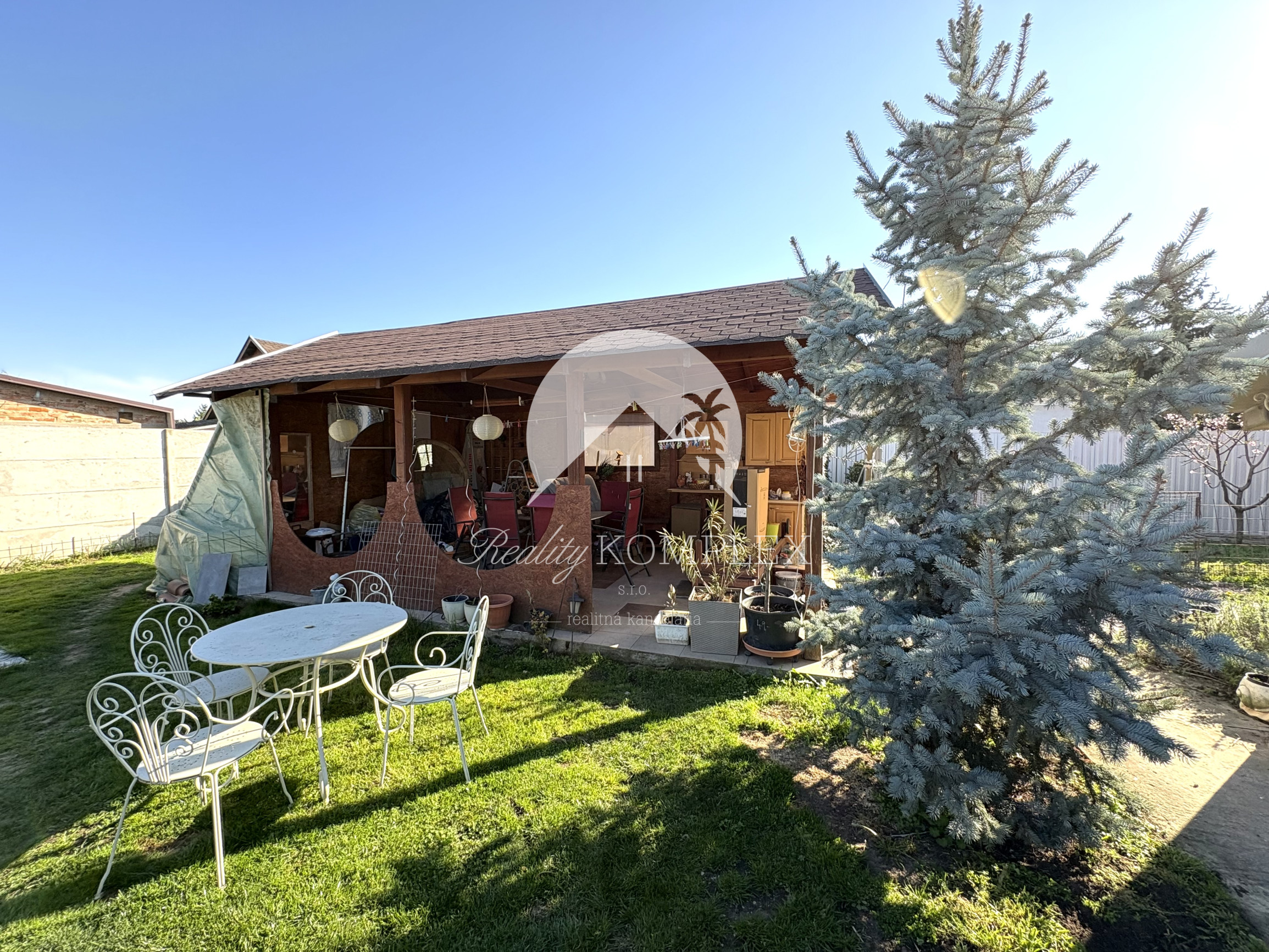 K dispozícii je altánok pre dve autá (40 m²) a terasa (21 m²). Dom má obecný vodovod, kanalizáciu, elektrinu aj plyn. Vykurovanie zabezpečuje plynový kotol, ktorý ohrieva aj teplú vodu. Nechýba komora (8 m²) a zimná záhrada. Všetky inžinierske siete sú vymenené. Neoddeliteľnou súčasťou je letná kuchyňa, ideálna na letné chvíle. Interiér domu aj jeho dispozičné riešenie boli navrhnuté tak, aby poskytovali komfortné a príjemné bývanie. Budúci majiteľ tu nájde všetko pre pohodlný život. Dom je vhodný pre všetky vekové kategórie a nachádza sa v pokojnej ulici. Len 150 m od domu sa nachádza malebné jazierko, ktoré dotvára jedinečnú atmosféru.