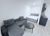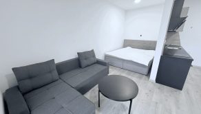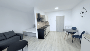 Byt disponuje otvoreným priestorom s praktickým rozdelením na dennú a nočnú časť. Kuchya je vybavená modernou kuchynskou linkou so spotrebičmi. Obývacia časť ponúka pohodlnú sedačku a jedálenský kút.