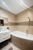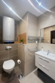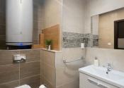 Veľkou výhodou bytu je vlastný bojler v kúpeľni, ktorý zabezpečuje nižšie mesačné náklady a nezávislosť pri ohreve vody.
